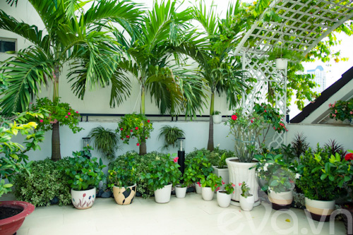 Khu vườn ngay trên sân thuợng ngôi nhà là nơi thường tụ họp của các thành viên trong gia đình.