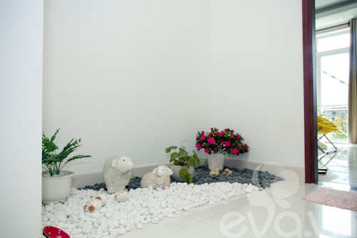 Một góc nhà được biến thành khu vườn mini với những viên đá cực xinh.