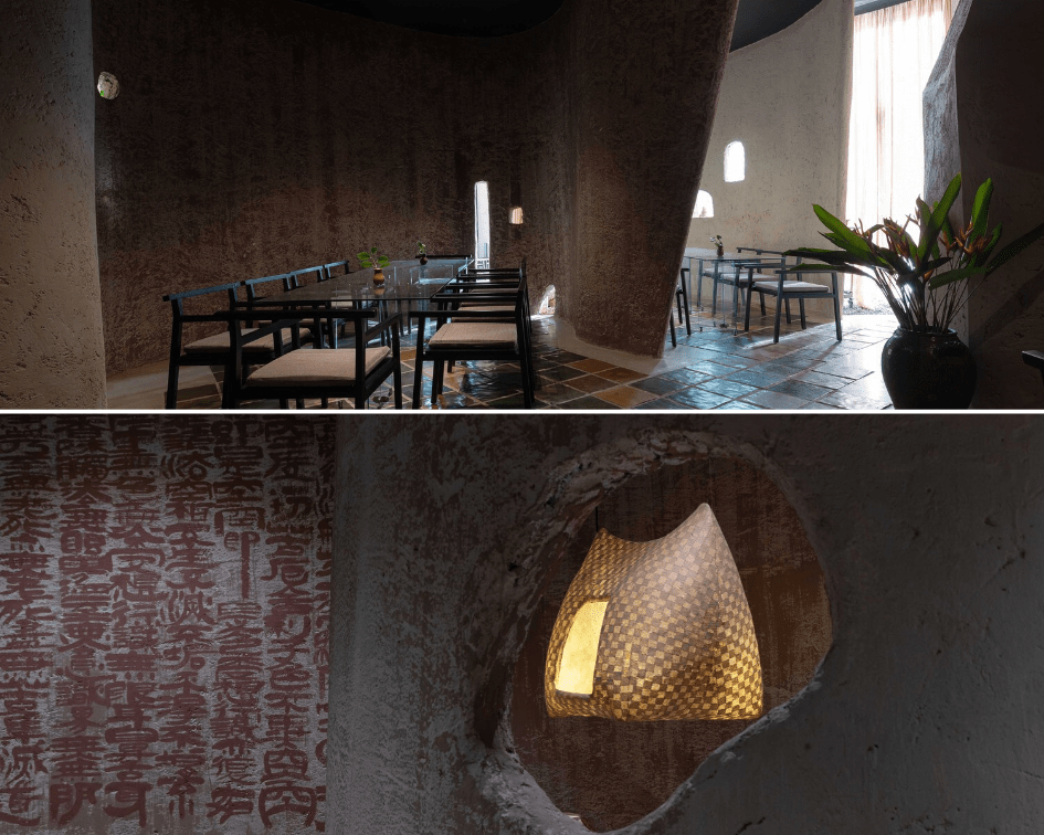 Để tạo nên những không gian đặc trưng của một nhà hàng chay, kiến trúc sư đã hợp tác cùng các nghệ nhân đến từ các lĩnh vực khác nhau nhằm mang đến giá trị tốt nhất cho kiến trúc và hài hòa với cuộc sống thường nhật người Tràng An.