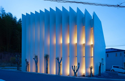 Đan xen trong các lớp "nan quạt", ngôi nhà được ốp kính toàn bộ phía bao ngoài.