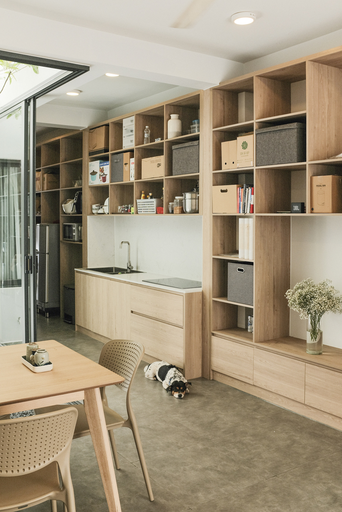 Ngôi nhà hướng nội này được thiết kế đơn giản, nép mình giữa những ồn ào của phố thị vừa để ứng phó với những thay đổi cuộc sống vừa để tránh dịch bệnh theo cách gọi bình thường mới. Hay nói cách khác kiến trúc sư gọi đó là sự kết hợp giữa “nhịp độ, sự kết hợp và tính hướng nội”.