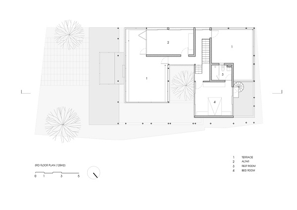 Thấy rõ kiểu thiết kế cũ vô cùng bí bách, nhiều nhược điểm khi sử dụng về lâu về dài cho ngôi nhà hướng Tây Bắc, kiến trúc sư đã đưa ra giải pháp các tầng xếp chồng xen kẽ với nhau theo chiều cao và theo trực diện, nên có thể nhìn xuyên suốt các phòng chính, bóng sẽ đỗ xuống các tầng bên dưới, không khí tự nhiên sẽ đi dọc theo ngôi nhà thông qua các khoảng trống, vì thế giảm sức nóng khi nhiệt độ bên ngoài tăng vào mùa hè.