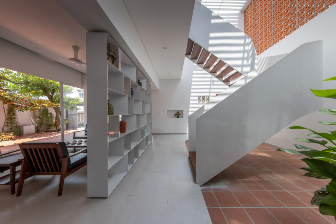 Thứ 4 – kết nối 2 khối tiếp theo bằng cầu thang tầng 1 để chủ nhân dễ dàng tiếp cận khu vực kỹ thuật hệ thống cung cấp nước và khu vực sân thượng – một không gian dành riêng cho các buổi sum họp gia đình với bạn bè và người thân vào những ngày đặc biệt.