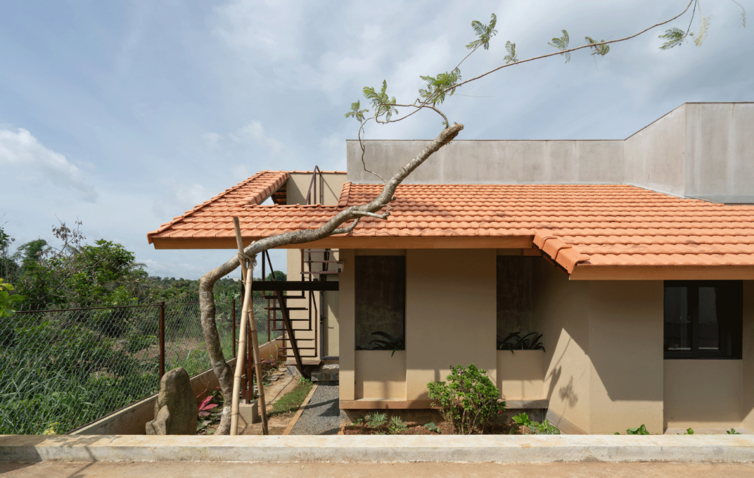 Ngôi nhà sử dụng các vật liệu thân thuộc có sẵn tại địa phương như: gỗ, ngói đất sét và gạch nung. Việc sử dụng nguyên liệu tại chỗ không chỉ giúp giảm chi phí vận chuyển và lượng phát thải carbon mà còn giúp công trình thích ứng hoàn hảo với khí hậu ôn hòa nhưng đôi khi khắc nghiệt của vùng cao nguyên.