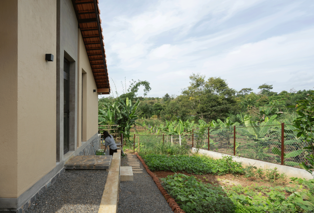 Bao quanh ngôi nhà là những luống rau và cây ăn trái được quy hoạch bài bản. Việc tự cấp tự túc một phần thực phẩm không chỉ giúp giảm chi phí sinh hoạt mà còn mang lại giá trị dinh dưỡng thuần khiết cho gia chủ. Ngôi nhà lúc này không còn là một vật thể thụ động tiêu thụ năng lượng, mà đã trở thành một hệ sinh thái nhỏ, hít thở và tái tạo cùng thiên nhiên.