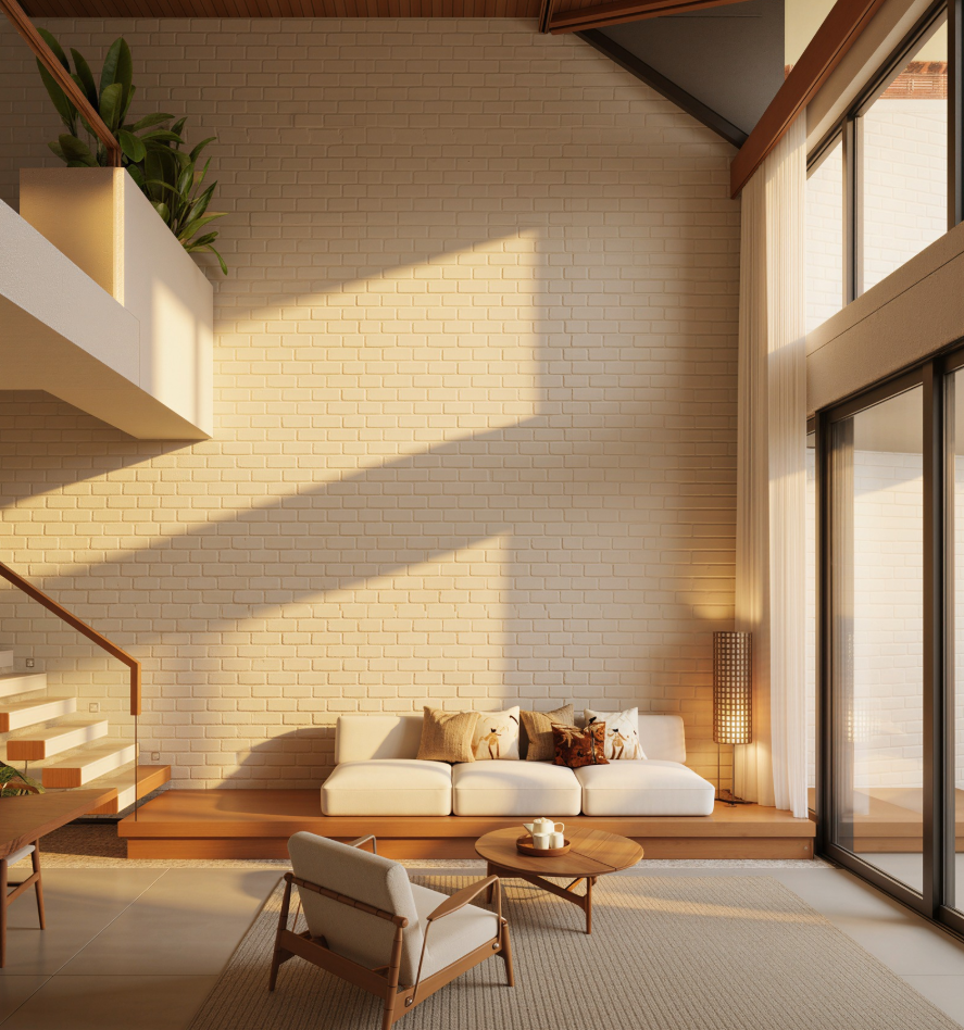 Một không gian sống hiện đại được thiết kế với tinh thần tối giản và sự nhất quán tuyệt đối về màu sắc và vật liệu. Đặc biệt, hãy chiêm ngưỡng cách ánh sáng tự nhiên được kiểm soát qua cửa kính lớn và rèm mềm mại, cùng những khu vực cá nhân hóa đầy cảm hứng cho từng thành viên trong gia đình.