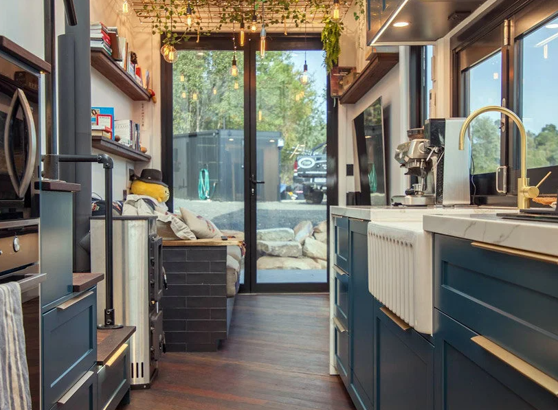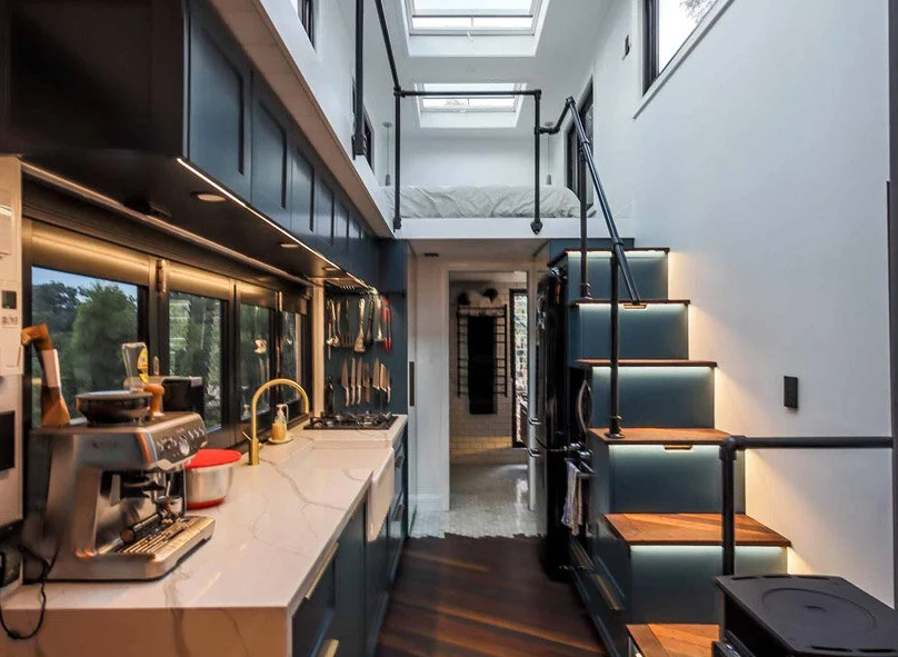 Bên trong nhà có đầy đủ tiện nghi như một nhà bếp với tất cả các thiết bị đồ dùng, một băng ghế đá hoa cương và một bồn rửa sang trọng ấn tượng. Phòng tắm có vòi hoa sen thiết kế lạ mắt. Một phòng khách có cả hệ thống giải trí hiện đại rộng lớn. Phòng ngủ, nơi có ánh sáng tự nhiên từ trần nhà, cửa ra vào và cửa sổ bản lớn.