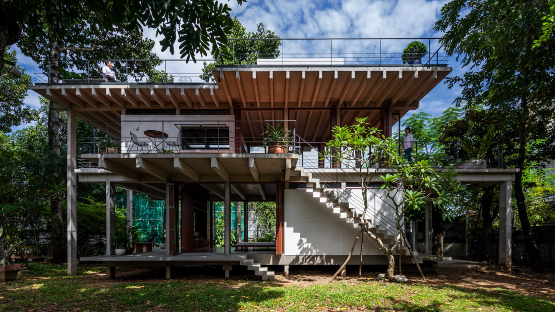Ngôi nhà sau khi hoàn thiện không những đáp ứng đầy đủ tiện nghi, nhu cầu chức năng sinh hoạt với các không gian rộng thoáng, đón trọn ánh sáng, cởi mở thiên nhiên xung quanh đảm bảo chất lượng cuộc sống mà còn thích nghi với triều cường diễn ra từng thời điểm trong năm.