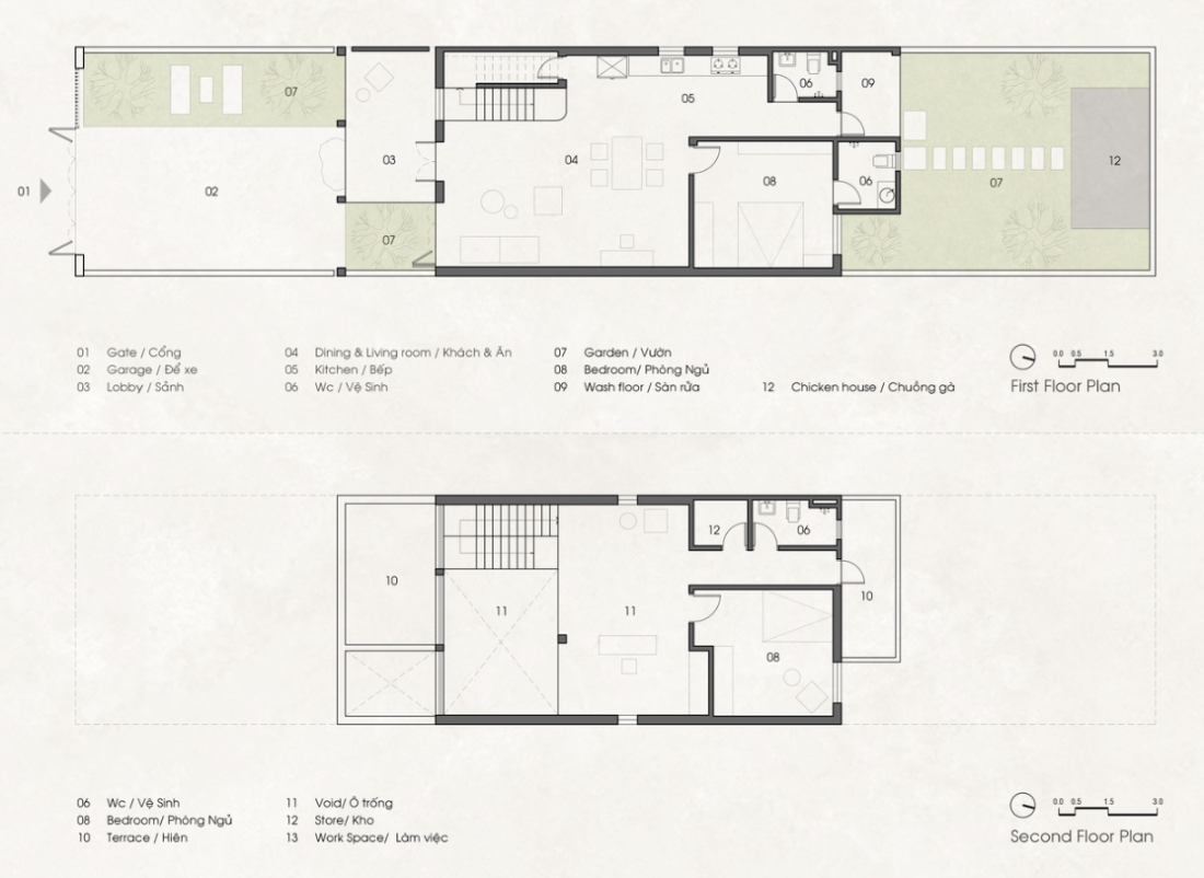 Từ đó kiến trúc sư đã đề xuất giải pháp tạo ra một cấu trúc tổng quan như những ngôi nhà nông thôn nhưng đơn giản hơn, đó là sắp xếp các yếu tố bên trong và bên ngoài, giữa chung và riêng một cách liền mạch. Trong đó, cấu trúc này sẽ sắp xếp thành nhiều tỷ lệ với độ sâu và chiều cao khác nhau.