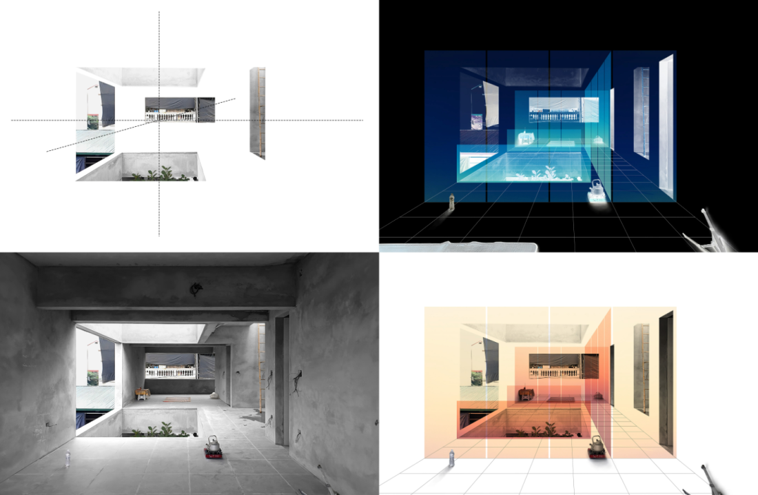 Tổng quan về ngôi nhà: Công trình này được thai nghén như một ngưỡng không gian – một điểm trung gian hòa giải tinh tế giữa sự đông đúc của đô thị và khung cảnh tự nhiên bao quanh. Ngôi nhà này được thiết kế với tính minh bạch đến mức hàng xóm cũng trở thành một phần của không gian sống. Đặc biệt, bên trong là một vũ trụ thu nhỏ, nơi bàn thờ, ấm nước sôi, cây mít, bếp nấu cùng nhau tạo nên chuỗi nghi lễ nhập trạch, đồng thời, kiến trúc được xây dựng với khả năng thêm tầng trong tương lai, sẵn sàng thích nghi với sự phát triển đô thị không ngừng.
