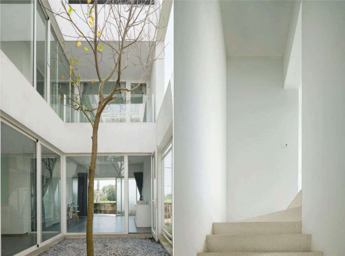 Ngôi nhà này không cố gắng phô trương bằng những chi tiết rườm rà; trái lại, nó hiện diện như một tuyên ngôn về sự tĩnh tại thông qua ngôn ngữ của những khối xếp tối giản.
