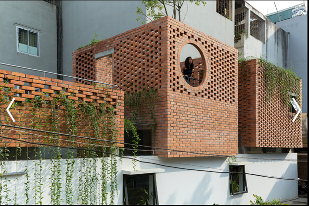 Ngôi nhà với mặt tiền hẹp trên diện tích tương đối nhỏ (4x16m), được thiết kế với các khoảng sân mở ở giữa, cho phép luồng không khí và ánh sáng tự nhiên lan tỏa khắp ngôi nhà, thích ứng một cách lý tưởng với khí hậu cận nhiệt đới ở Hà Nội.