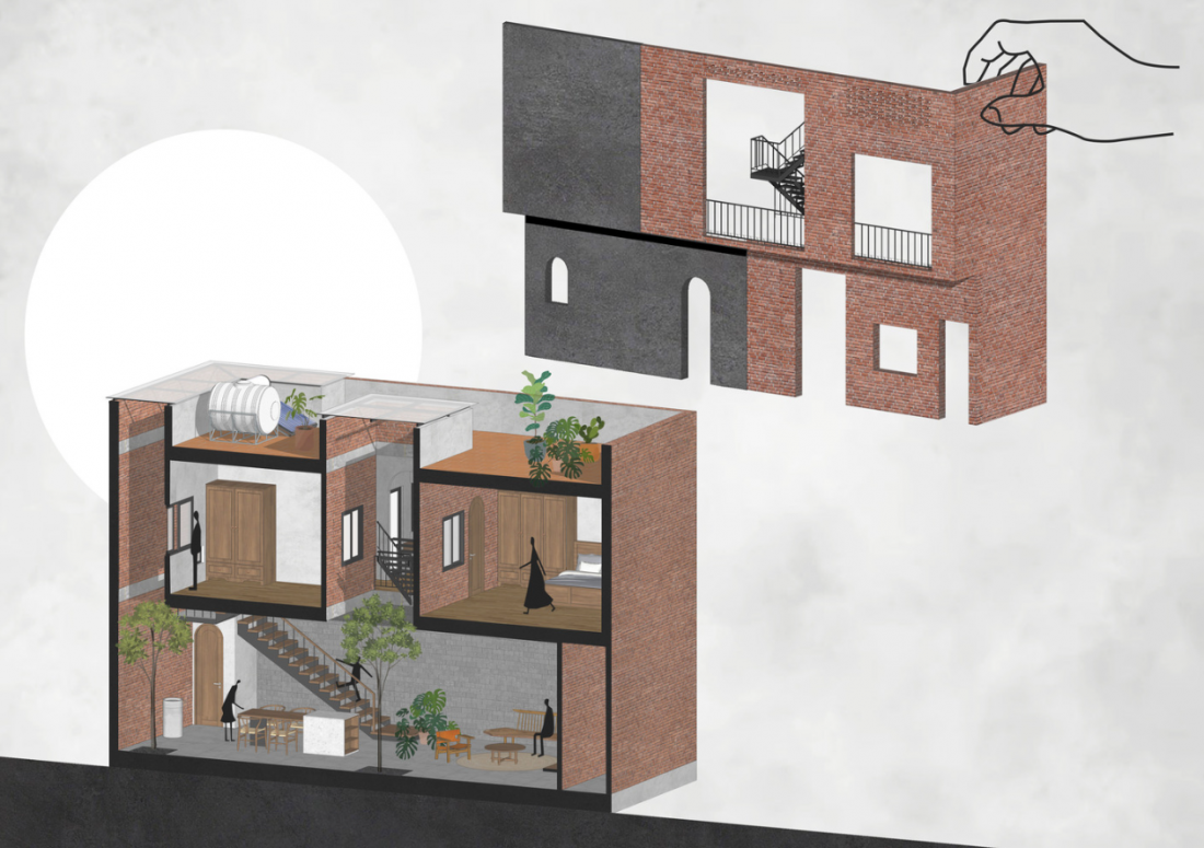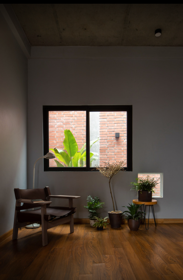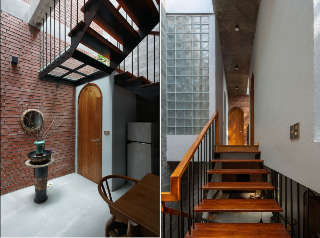 Kiến trúc nhà ống nhỏ và hẹp thường rất phổ biến ở các đô thị lớn nói chung tại Việt Nam và Hà Nội nói riêng. Như ngôi nhà này với nhược điểm mặt tiền nhỏ, thiếu sáng và thường xuyên ẩm thấp. Chính vì vậy, kiến trúc sư đã đưa ra giải pháp thiết kế thêm 2 giếng trời để đưa ánh sáng vào bên trong và tăng lưu thông gió tối đa giúp không gian trở nên thoáng đãng, từ đó ngôi nhà sẽ khô ráo và thích ứng với những thay đổi của thời tiết vào mùa mưa cũng như mùa lạnh cuối năm.