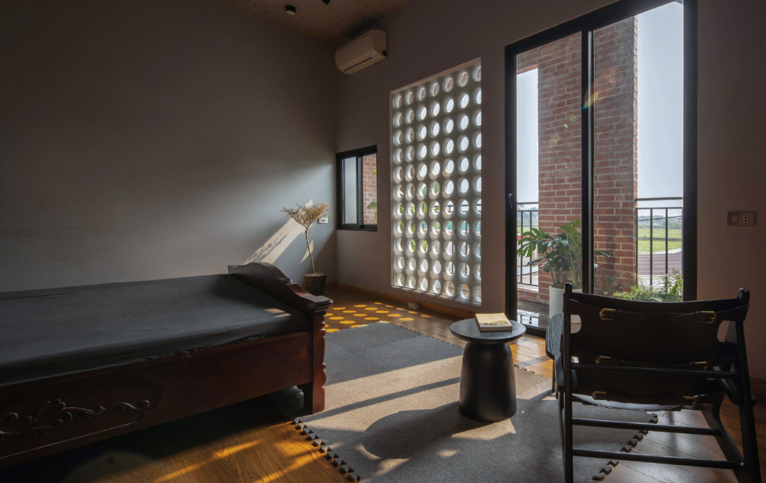 Các ô cửa sổ cũng được bố trí đan xen với cây xanh để giảm thiểu các tia nắng chiếu trực tiếp vào phòng ngủ giúp giấc ngủ được trọn vẹn hơn.