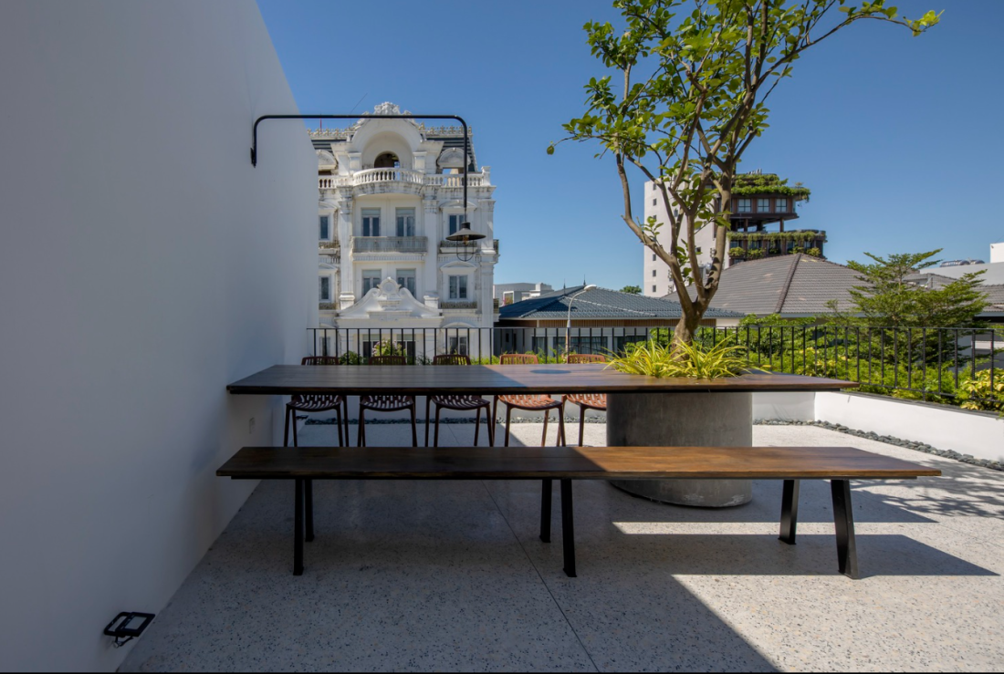 Khoảng sân thượng ngoài xây xanh còn có thêm nhiều không gian vui chơi, bàn ghế ưu tiên dành cho các hoạt động xum họp gia đình vào những ngày nghỉ.