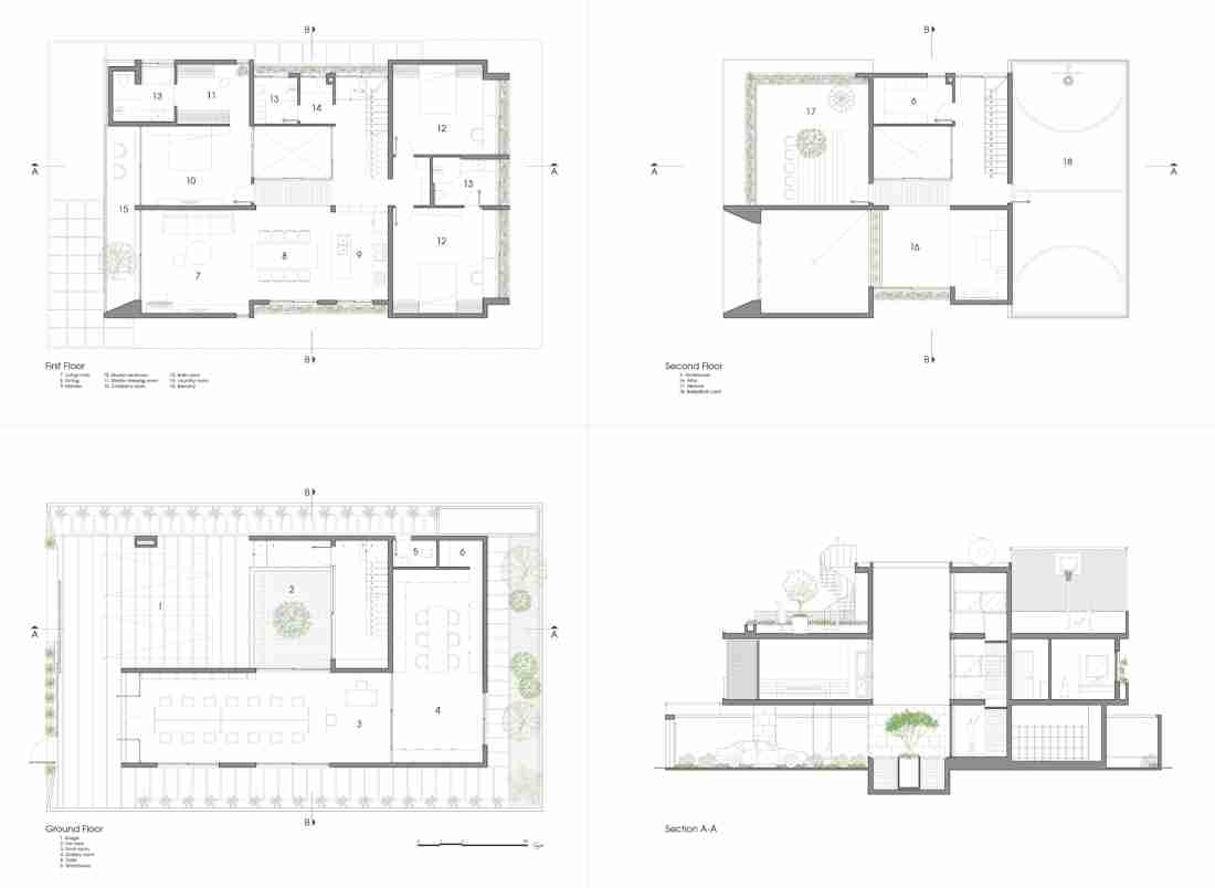 Ngôi nhà có cấu trúc 1 trệt, 2 tầng được tạo thông qua những đường nét hình học đơn giản, trong đó tập trung nhấn mạnh vào tỷ lệ hơn là chi tiết nhằm tạo nên một sự chuyển tiếp hài hòa và tác động ánh sáng tự nhiên.