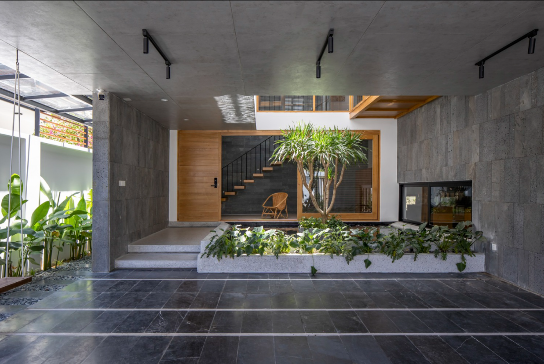 Không gian nhà phố ấm cúng lạ mắt nhờ kết hợp bê tông và đá tại Huế