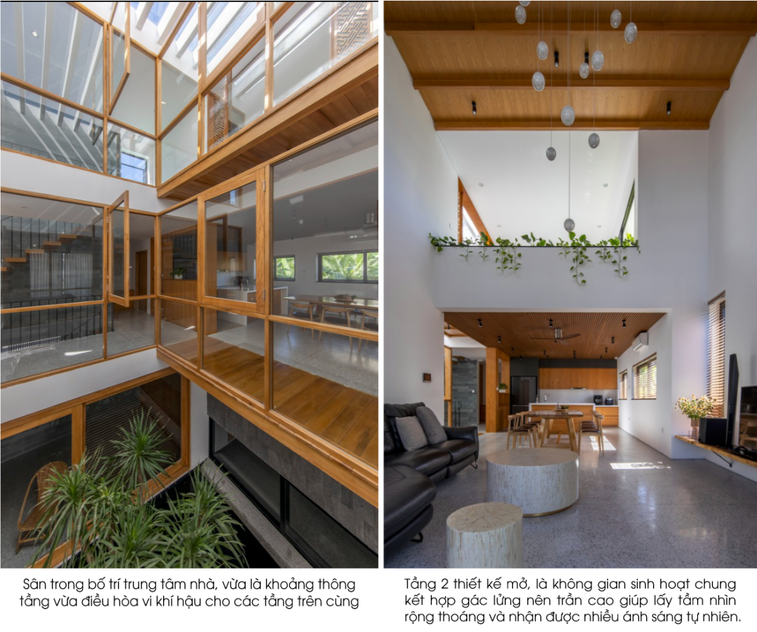 Đồng thời sân trong cũng là nơi giao thoa giữa không gian trong và ngoài trời – nơi tiếp xúc với thiên nhiên, có thể điều hòa vi khí hậu, làm mát vào mùa hè nóng bức và làm ấp trong thời tiết lạnh của mùa đông.