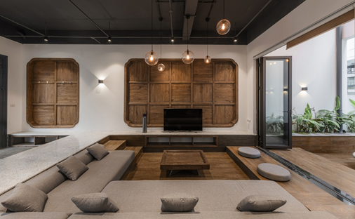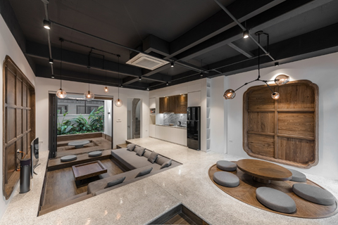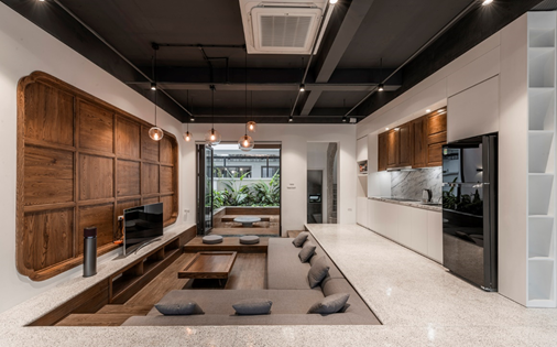 Các khu vực chức năng chính được phân chia không phân vùng mà thông qua việc sử dụng độ cao của sàn khác nhau, tạo cảm giác thú vị và không bị nhàm chán khi chủ nhà lưu thông trên cùng một tầng.
