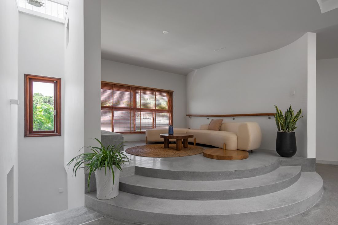 Mỗi vị trí trong nhà đều mang đến cái nhìn khác nhau được kiến trúc sư cố tình tạo nên một bức tranh thú vị. Các không gian này được bố trí theo đường uốn lượn để tối đa hóa sự kết nối giữa bên trong và bên ngoài, giữa đặc và rỗng, giữa con người và thiên nhiên.