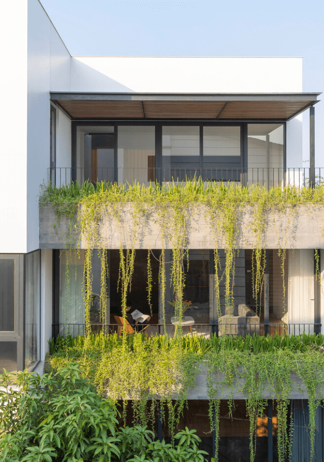 Theo kiến trúc sư chia sẻ, ngôi nhà được sử dụng giải pháp thêm bớt khối tích kết hợp những khoảng đặc rỗng đan xen một cách phù hợp tạo nên hình dáng cao – rộng ở phía sau và thấp dần phía trước với đích mang lại những mảng vườn xanh mát đan xen bên trong nhà.