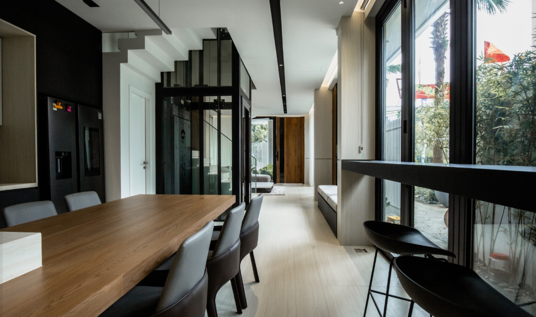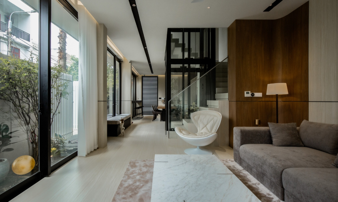 Ngôi nhà không chỉ là một ngôi nhà tiện nghi mà còn là một “ốc đảo xanh” giữa nhịp sống đô thị ồn ào. Cây xanh được bố trí khéo léo khắp nơi, vừa làm đẹp không gian, vừa điều hòa không khí, mang lại cảm giác gần gũi với thiên nhiên. Đây là nơi gia chủ có thể tạm rời xa sự hối hả bên ngoài, tìm về sự yên bình và chữa lành tâm hồn.