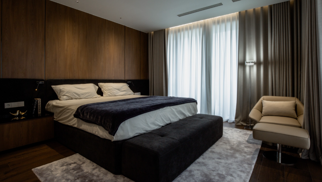 Phòng ngủ được ưu tiên đặt ở hướng Đông để tránh ánh nắng gay gắt từ phía Tây vào buổi chiều. Nội thất và ánh sáng trong phòng được chọn lọc kỹ càng, tạo nên một không gian yên bình, ấm cúng. Tất cả nhằm giúp gia chủ dễ dàng chìm vào giấc ngủ sâu, tái tạo năng lượng sau một ngày dài.