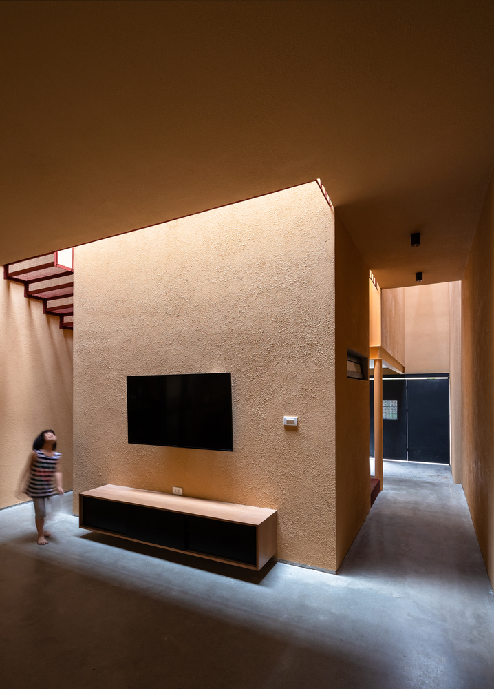 Ngôi nhà này không cố gắng phô trương bằng những chi tiết rườm rà; trái lại, nó hiện diện như một tuyên ngôn về sự tĩnh tại thông qua ngôn ngữ của những khối xếp tối giản.