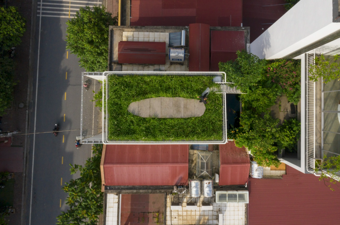 Điểm đặc biệt của ngôi nhà là khu vườn trên cao hướng Đông Nam, nằm phía trên phòng khách và khu vực bếp.