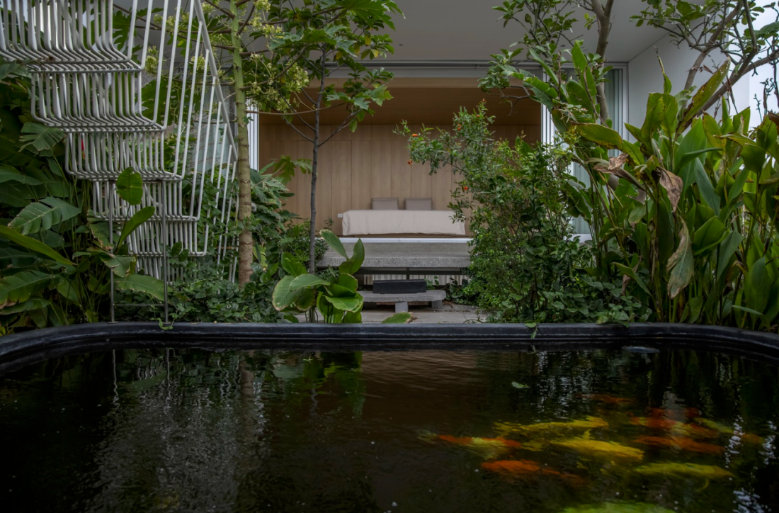 Không gian xanh này không chỉ giúp điều hòa nhiệt độ mà còn đưa thiên nhiên hòa quyện vào cuộc sống hàng ngày của gia chủ.