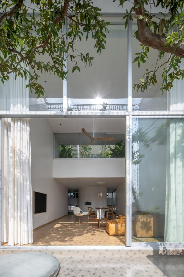 Ngôi nhà mang phong cách kiến trúc đương đại, không chỉ đáp ứng nhu cầu ở của gia chủ mà còn thể hiện tầm nhìn về lối sống cân bằng, hài hòa giữa con người và thiên nhiên ngay trong không gian đô thị. Công trình hoàn thành vào năm 2023 với chi phí không được tiết lộ.