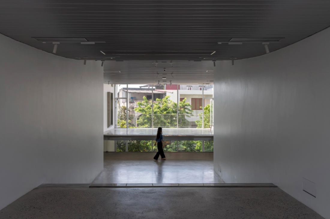 Sàn xếp tầng tạo nên sự liên tục về thị giác giữa các tầng, cho phép ánh sáng và không khí lưu thông tự do hơn trong nhà.
