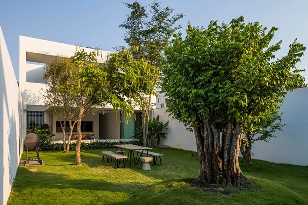 Sân sau nhà tràn ngập cây xanh, tạo không gian xanh mát cho ngôi nhà