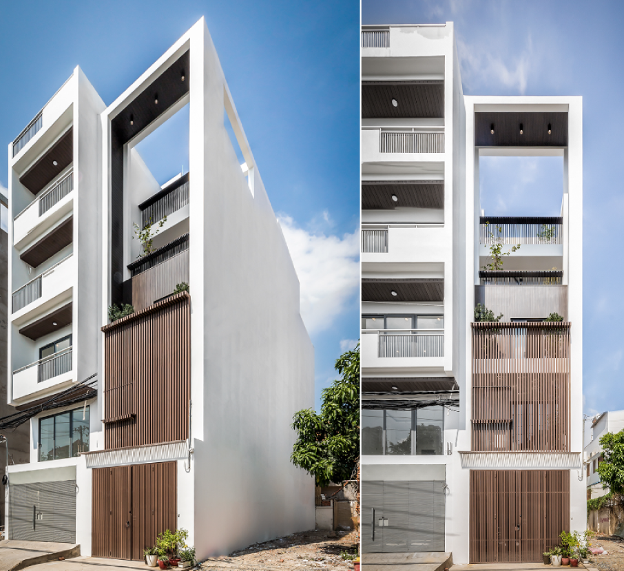 Hành lang dài kết hợp với thông tầng ánh sáng tạo nên vẻ đẹp tự nhiên của kiến trúc nhà phố và mang đến cảm xúc cho con người.