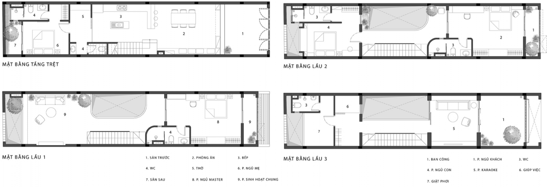 Mặt bằng kiến trúc nhà phố Thảo Điền 2.8 tỷ của gia đình ba thế hệ với thiết kế ưu tiên cho trẻ và người cao tuổi.