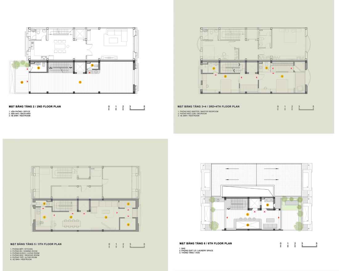 Tầng 3, 4 dành cho phòng ngủ có ban công mang đến cảm giác gần gũi với thiên nhiên và đảm bảo sự thuận tiện cũng như sự riêng tư của các thành viên khi cần.