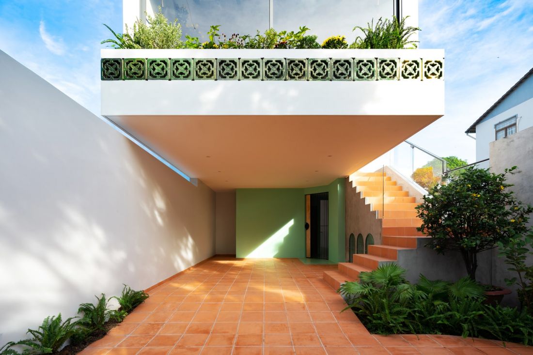 Để tận dụng chênh lêch của địa hình, các không gian được bố trí lệch tầng, từ đây sẽ hình thành không gian sân vườn cao, thoáng mát là sân chơi hoặc không gian họp mặt gia đình.