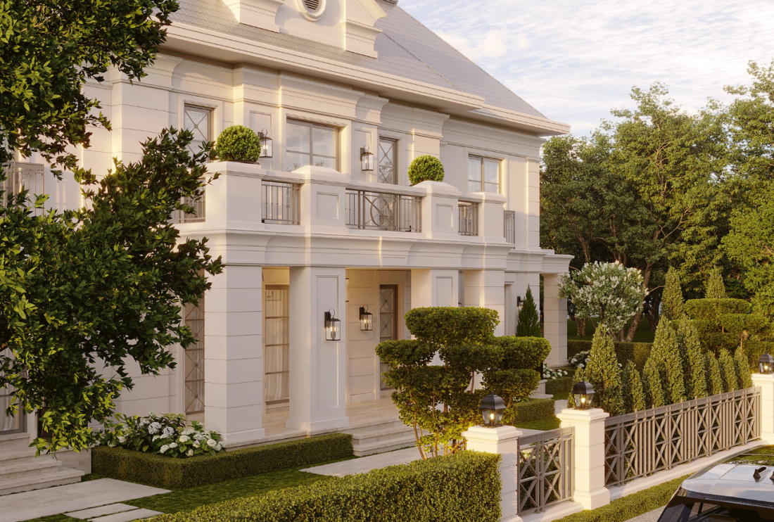 Bảng màu trung tính tinh tế, chủ yếu là trắng, be và các tông màu gỗ tự nhiên sáng, làm nền cho các giải pháp kiến trúc. Các ô kính lớn không chỉ đảm bảo ánh sáng mà còn biến ánh sáng thành một yếu tố trang trí. Ánh sáng nhẹ nhàng trượt trên các bề mặt trung tính, tạo ra các mảng sáng tối có chiều sâu, hỗ trợ cho sự chiêm nghiệm.