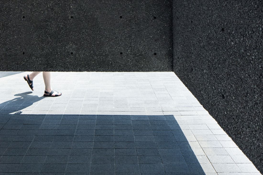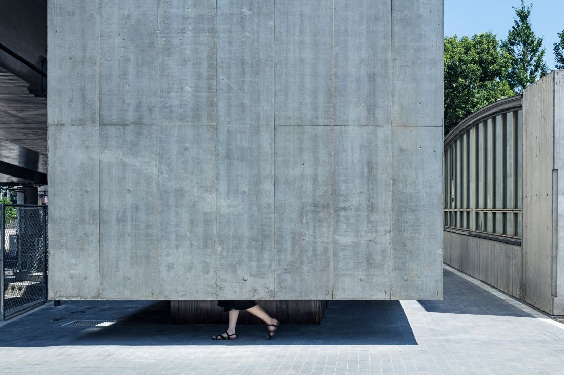 Các bức tường bê tông được treo lên có cảm giác như đang trôi nổi, trừ một khoảng trống bên dưới chân của tòa nhà cho phép ánh sáng và không khí được hòa trộn vào trong.