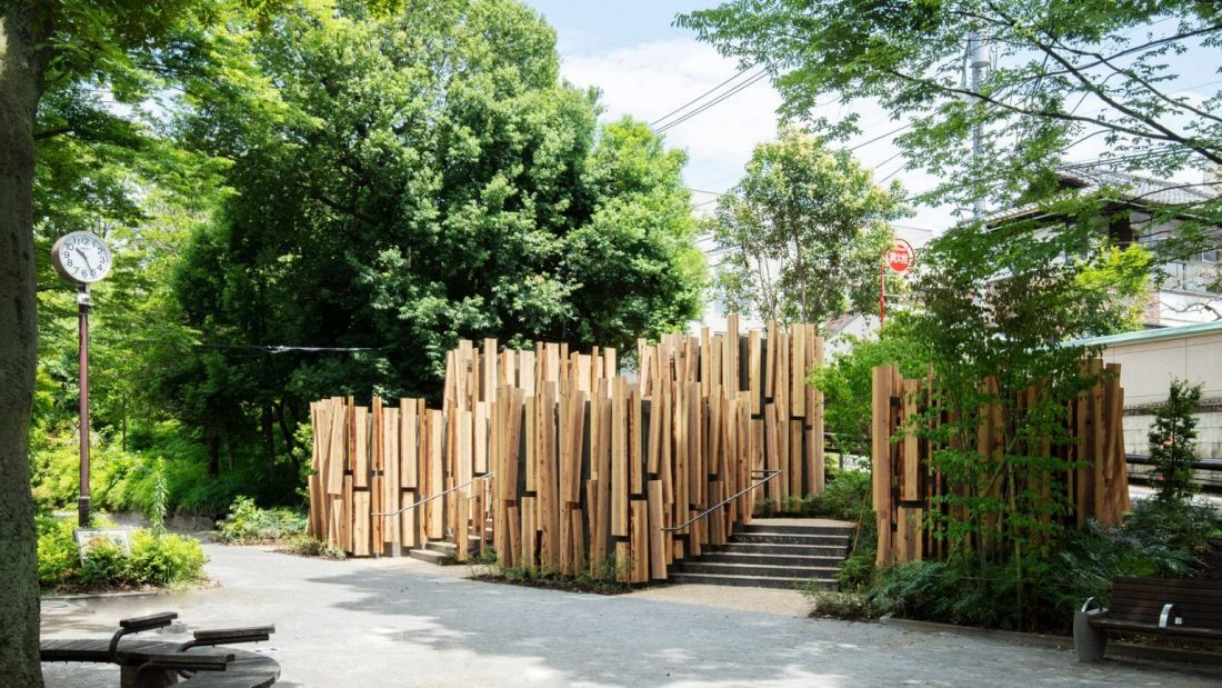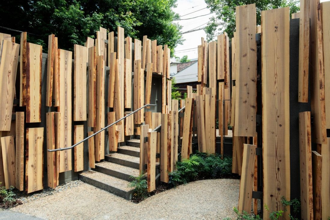Được bao phủ một lớp bên ngoài bằng gỗ tuyết tùng với cách sắp xếp khá chồng chéo, không theo bất cứ quy tắc nào đã mang về cho công trình vệ sinh công cộng ở Nhật Bản này một sự thu hút đến lạ kỳ.