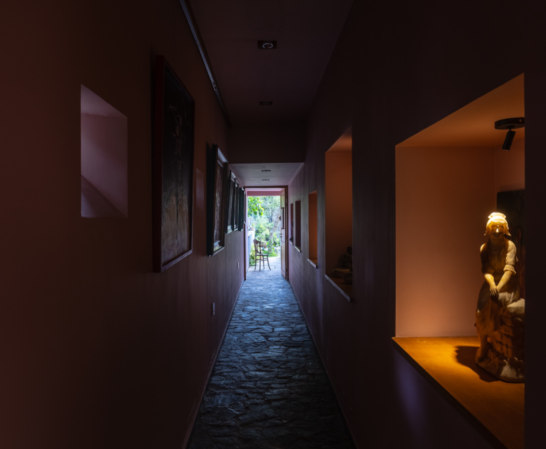 Để thưởng trọn đam mê của gia chủ, sẽ có 1 hành lang nhỏ riêng dẫn lối người xem khám phá từ đầu đến cuối nhà.