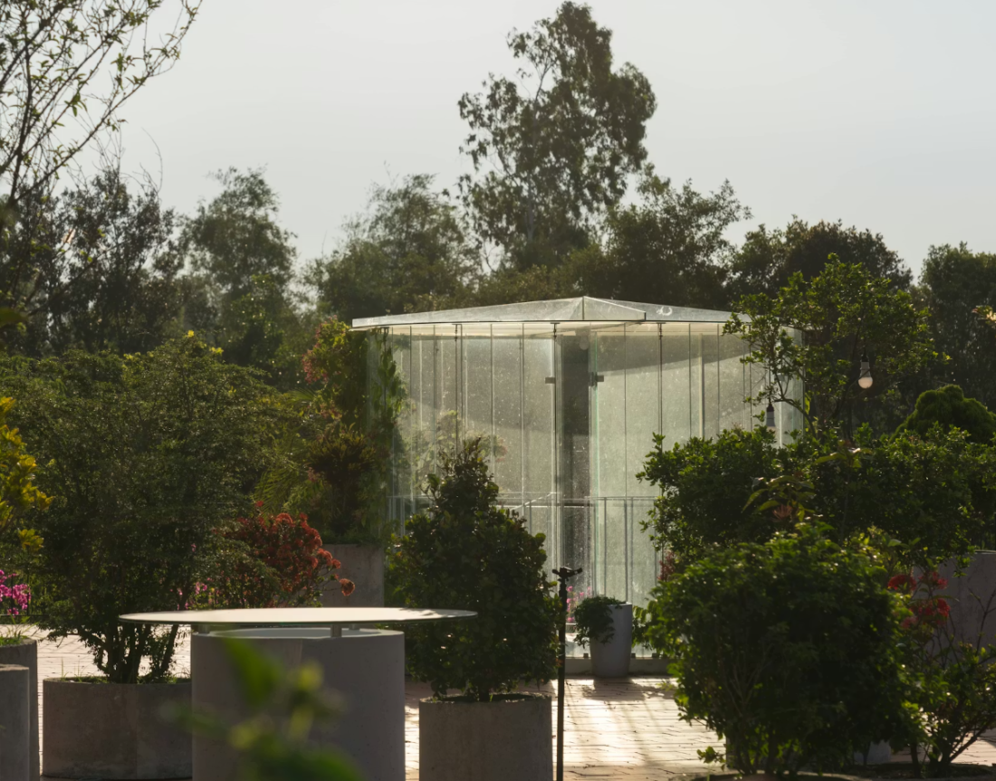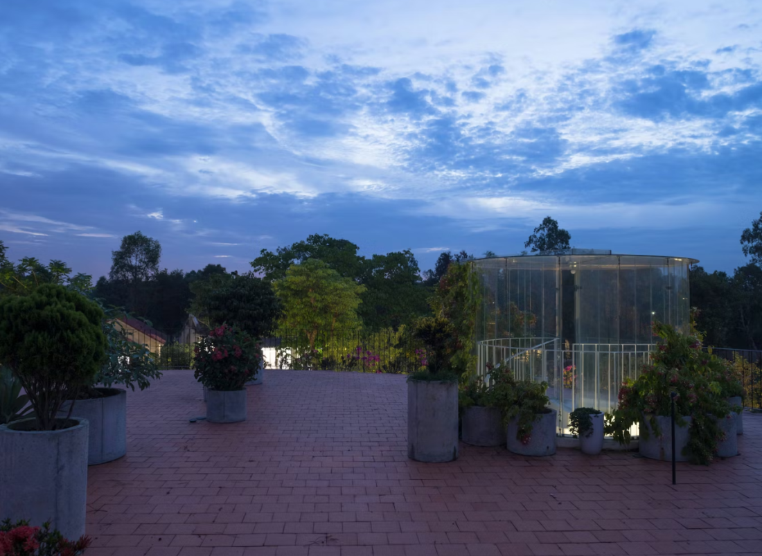 Khu vườn trên mái thuộc khối chính hình elip lớn.