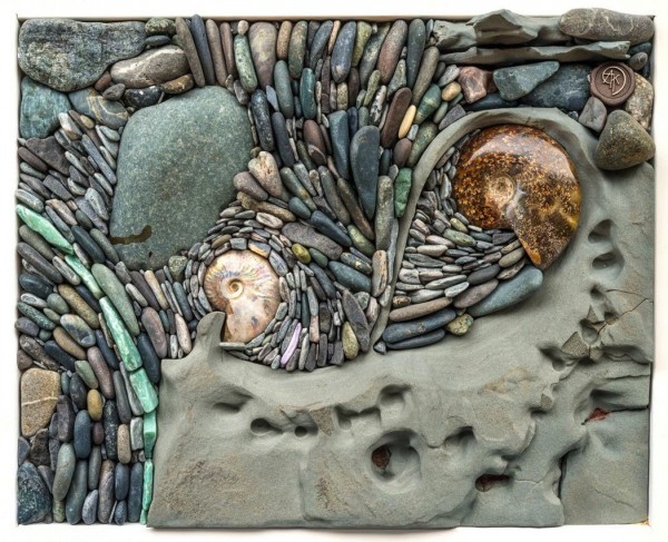Đá và những vỏ sò, đều là những vật liệu tự nhiên được sưu tập ở đảo Vancouver, Canada.