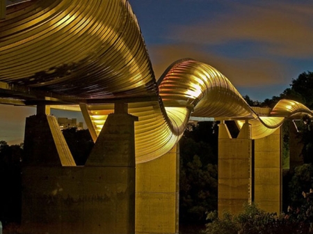 Cầu bộ hành Henderson Waves là một công trình kiến trúc đầy tính mỹ thuật của đảo quốc sư tử Singapore. Chiếc cầu này nằm trên cao so với đường xa chạy, nối liền hai ngọn đồi Mount Faber Park và Telok Blangah Hill Park. Giống như một con rắn bò trên không trung, chiếc cầu có cấu trúc thiết kế lượn sóng mềm mại nhưng vô cùng chắc chắn. Đến buổi tối, khi ánh đèn LED pha trên cầu sẽ cho mọi người một quang cảnh thật sự ấn tượng.