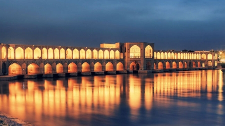 Cây cầu Khaju này có thể xem là công trình đẹp nhất của tỉnh Isfahan, Iran. Được xây dựng bởi vua Ba Tư Shah Abbas đệ Nhị từ giữa thế kỉ 17. Không chỉ là cầu nối, Khaju còn đóng vai trò một con đập nhỏ điều hòa lượng nước của sông Zayandeh thông qua những cửa sập dưới chân cầu. Thậm chí với thiết kế có phần rộng rãi và chắc chắn này, cây cầu còn là nơi hội họp của người dân khi muốn thư giãn bên dòng sông. Chắc chắn bạn sẽ “lóa mắt” trước những ánh đèn đầy huyền ảo vào ban đêm phát ra từ chiếc cầu này.