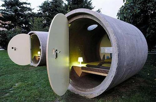 Khách sạn Das Park nằm ở thành phố Linz là ý tưởng thiết kế của kiến trúc sư Andreas Strauss. Ông đã thiết kế những lõi bê tông khổng lồ dùng làm ống nước ngầm để tạo thành những phòng khách sạn. Mỗi phòng đều được trang bị những thứ cần thiết như đèn, giường đôi, túi ngủ và khóa điện để đảm bảo an toàn cho hành lý.