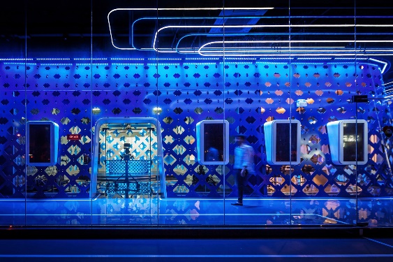 Thiết kế nội thất mới cho kênh 7 BBTV (Bangkok TV and Broadcasting Co., Ltd), của Airbase Architects và Apostrophy's, cũng áp dụng cách tiếp cận đơn sắc cho môi trường làm việc bằng cách sử dụng màu xanh lam. Phòng thu phát sóng mới, nằm trong một trạm xăng cũ, chiếu ánh sáng xanh ra môi trường xung quanh thông qua lớp kính bao phủ toàn bộ cấu trúc của nó, tạo ra một bầu không khí sống động, đặc biệt là vào ban đêm.