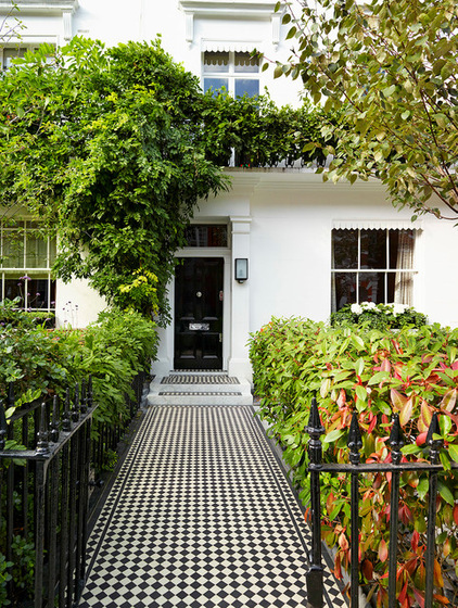 “Tấm thảm” kẻ ca rô đen trắng dọc lối đi ăn rơ hoàn hảo với cánh cửa đen bóng và hàng rào sắt tạo cảm hứng thân thiện, cởi mở kiểu như: Tôi có thể không biết gì về bạn, nhưng tôi rất háo hức muốn khám phá bên trong ngôi nhà của bạn.