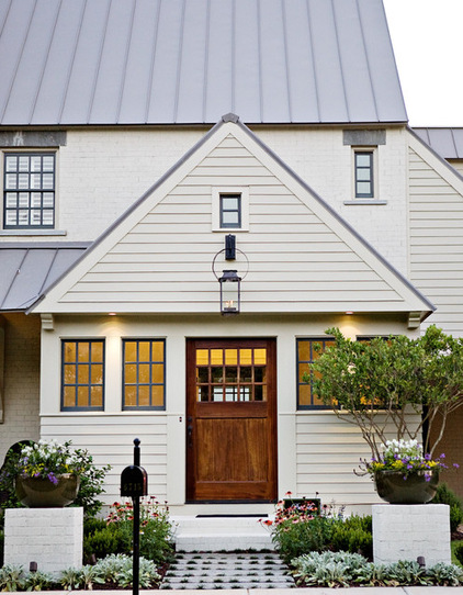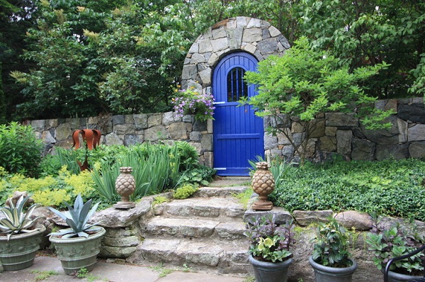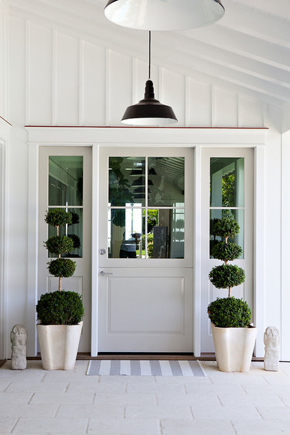 Bố trí hai chậu cây được cắt tỉa nghệ thuật đối xứng nơi cửa ra vào. Những chậu cây tỉa tán cao lêu nghêu này phù hợp với hiên nhà có trần cao.