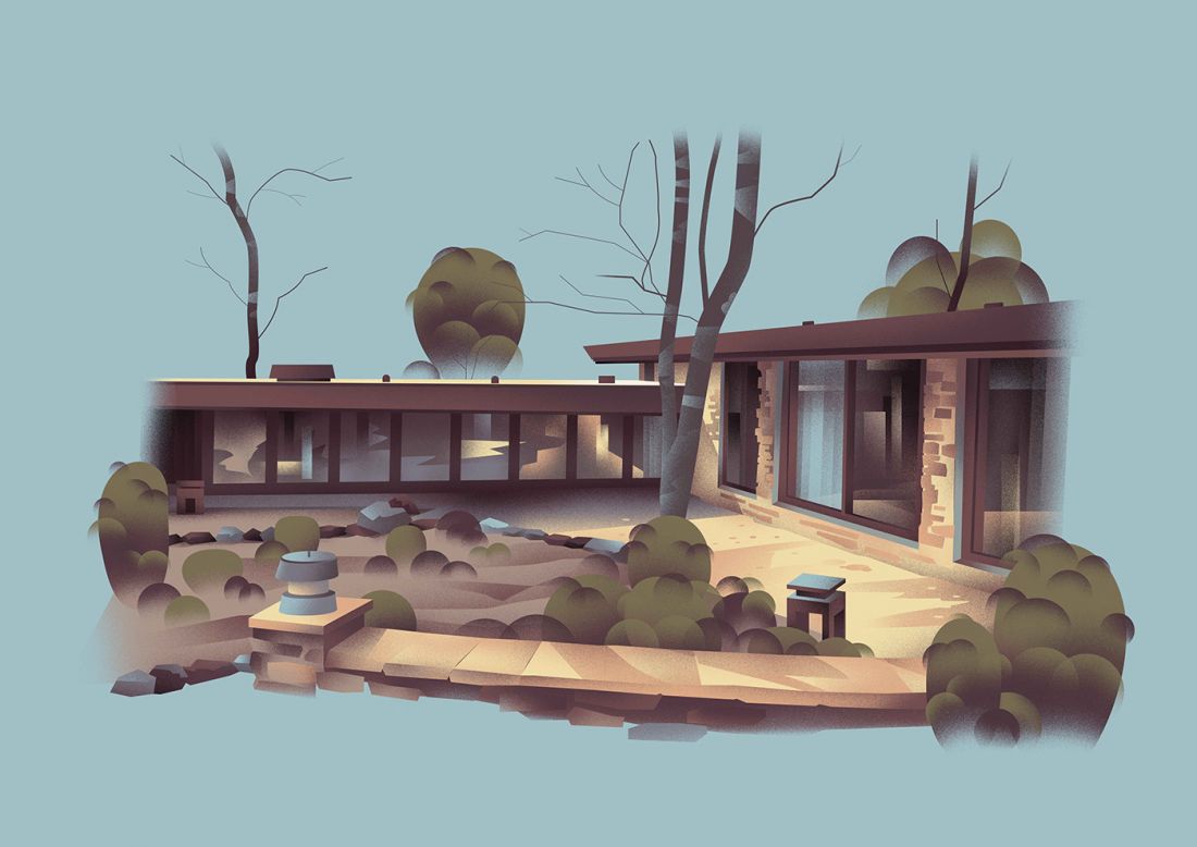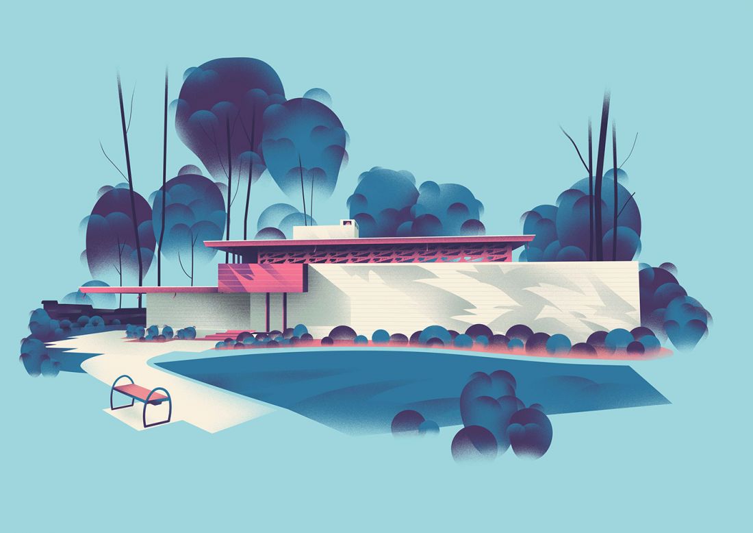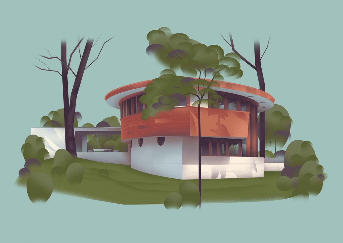 Đây là một thiết kế ấn tượng và đặc biệt nhất đối với nhà kiến trúc, với một không gian thoáng đãng có mái bằng, bao quanh rất nhiều cây xanh. Sau này ngôi nhà trở thành một bảo tàng cho đồ nội thất.